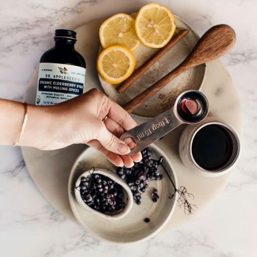 - 1 Tbsp. Dr. Appleseed’s Organic Black Elderberry Syrup with Mulling Spices